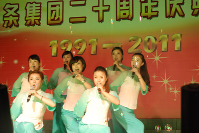 整場慶典晚會由18個文藝節(jié)目組成,其中16個節(jié)目由東華員工自編、自演,這些節(jié)目包括歌舞、小品、雜技、啞劇等等,節(jié)目集思想性、藝術性和觀賞性為一體。員工們以優(yōu)美的歌聲、輕盈的舞姿、蓬勃的激情,充分展示了東華創(chuàng)建20年來所發(fā)生的巨大變化和取得的輝煌業(yè)績,栩栩如生地體現(xiàn)了東華兒女團結奮進、求真務實、開拓創(chuàng)新的良好形象和精神風貌。宣碧華董事長的一首清唱《讀毛主席的書》,把整臺晚會推向了高潮,員工們掌聲不斷。