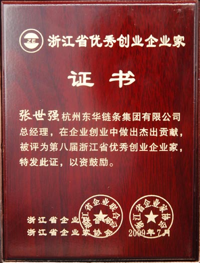 10月29日,在省人民大會堂召開的“2009浙江省企業家活動日”上,集團總經理張世強被授予“第八屆浙江省優秀創業企業家”榮譽稱號。