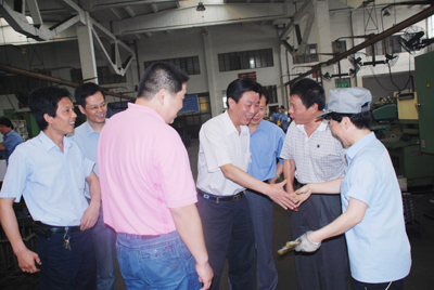 6月18日,宣碧華董事長在東風農機集團徐小林總經理、興齒金耀民總經理、蔣亞龍常務副總經理等領導的陪同下,先后來到了興化齒輪公司南、北廠區和鍛造廠區的各生產車間親切慰問、看望一線員工。當他看到生產一線呈現出良好發展態勢,如一人多機、一人多崗,老舊設備的改造利用,生產區域、流程管理等等方面的整合、優化,特別是員工們的精神面貌煥然一新時,宣董事長非常欣慰,認為這些良好的發展態勢對興化朝著有競爭力目標發展是非常關鍵的。