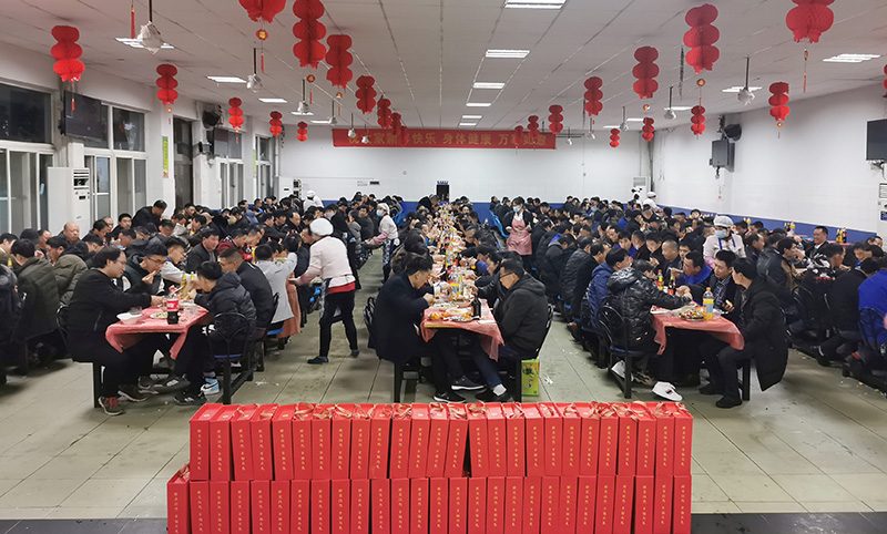 2月10日,在除夕來臨之際,公司黨政、工會聯合組織外地單身留守員工在公司開展“同吃年夜飯,歡樂過大年”活動,共有400多名員工參加。工會副主席楊海軍致辭,感謝大家為公司的穩健發展付出的努力,并向大家致以新春的美好祝福。年夜飯上,公司為大家抽獎準備了豐富的大禮包,并不間斷地發放紅包,大家暢談生活工作,飲美酒品美食,其樂融融,讓外地單身員工在公司過年也感受到家的溫暖和春節的喜慶。