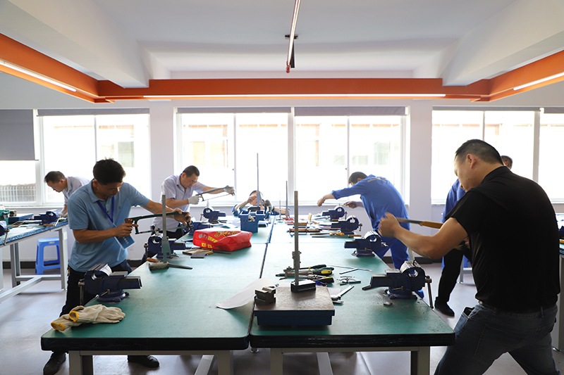本次鉗工技能比武共有來自春風(fēng)動(dòng)力、老板電器、東華鏈條、浙江健拓等10家企業(yè)的53名選手參加,考慮到公平公正,選手分為“普通組”和“高級(jí)組”進(jìn)行比賽,共進(jìn)行三場(chǎng)比賽。比賽中,參賽選手認(rèn)真識(shí)圖、精準(zhǔn)劃線,運(yùn)用鋸、鉆、挫等技藝,以最佳水平將臺(tái)鉗上的毛坯件逐漸變成符合標(biāo)準(zhǔn)的成品。