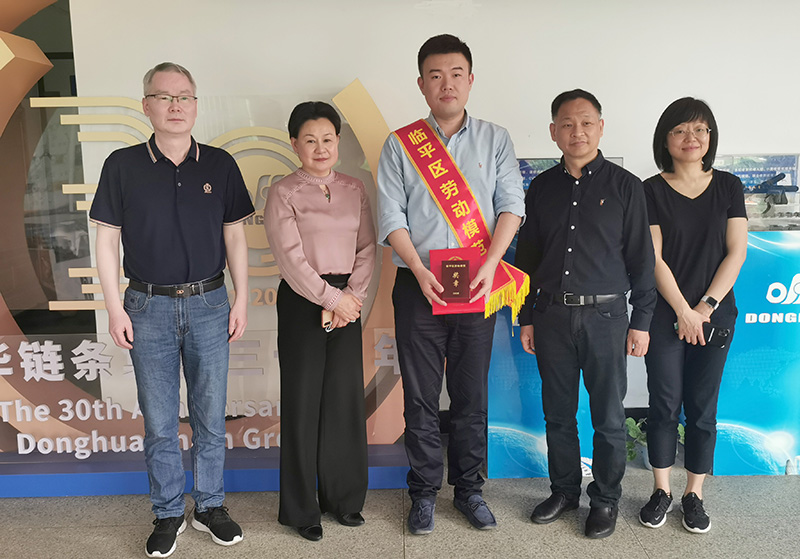 5月7日下午,臨平區(qū)人大常委會副主任、區(qū)總工會主席徐紅崗,臨平國家級經濟技術開發(fā)區(qū)黨工委委員、管委會副主任蔣葉華一行專程到東華,與宣成董事長進行座談,向宣成董事長頒發(fā)區(qū)勞動模范證書和獎章。