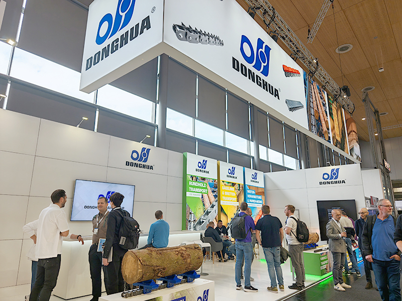 東華實施“走出去”戰略十多年來,國際化發展日趨成熟。近年,在公司實施18&60細分市場發展戰略中,專門針對歐洲市場需求,研發了覆蓋木工機械全場景應用的高端鏈條,包括帶耐磨板圓木輸送鏈、尖齒鏈、帶塑料附件滾子鏈等,重點呈現了木工機械特殊新工藝專用鏈條,如林木采伐、板材加工、自動化生產線等領域。這些產品在本屆展會上精彩亮相,吸引了許多全球客戶的目光。