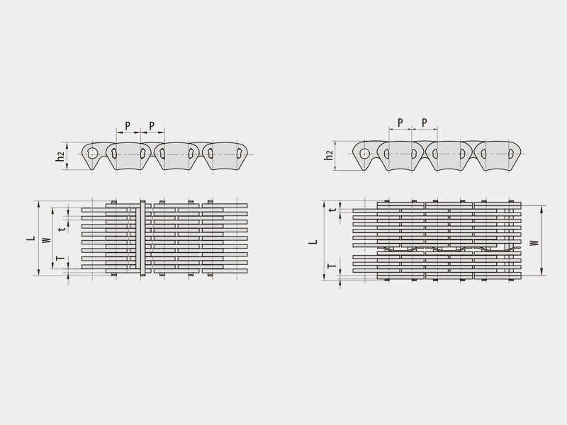 ● 按嚙合方式主要有:內(nèi)嚙合、外嚙合、內(nèi)外復(fù)合嚙合齒形鏈。