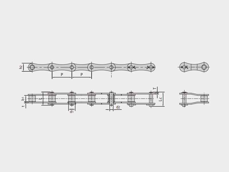 ● 不銹鋼滾子鏈結構、尺寸符合ISO 606等標準,主要有不銹鋼短節距滾子鏈、不銹鋼短節距直邊鏈板滾子鏈、不銹鋼雙節距滾子鏈、不銹鋼加長銷軸鏈等,以及相應的各種附件;