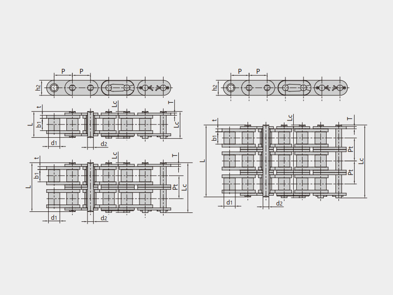 ● 輸送用滾子鏈的基鏈尺寸符合ISO、ASME/ANSI、DIN、JIS等標(biāo)準(zhǔn)的規(guī)定,主要有A系列直邊鏈板滾子鏈、B系列直邊鏈板滾子鏈、短節(jié)距帶附件輸送鏈、雙節(jié)距輸送鏈、雙節(jié)距帶附件輸送鏈等;