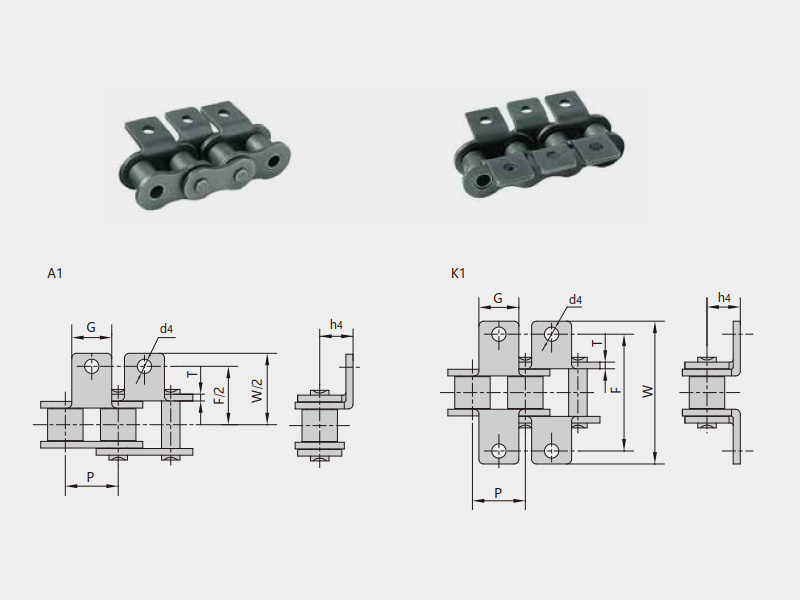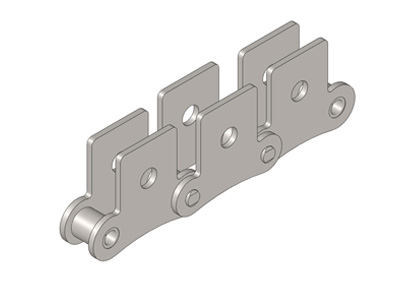 ● 輸送用滾子鏈的附件根據(jù)使用要求設(shè)計(jì)不同的結(jié)構(gòu)形式,具有廣泛性、多樣性等特點(diǎn),其中水平壓彎附板、帶孔直立附板、加長(zhǎng)銷(xiāo)軸等附件應(yīng)用較為廣泛。