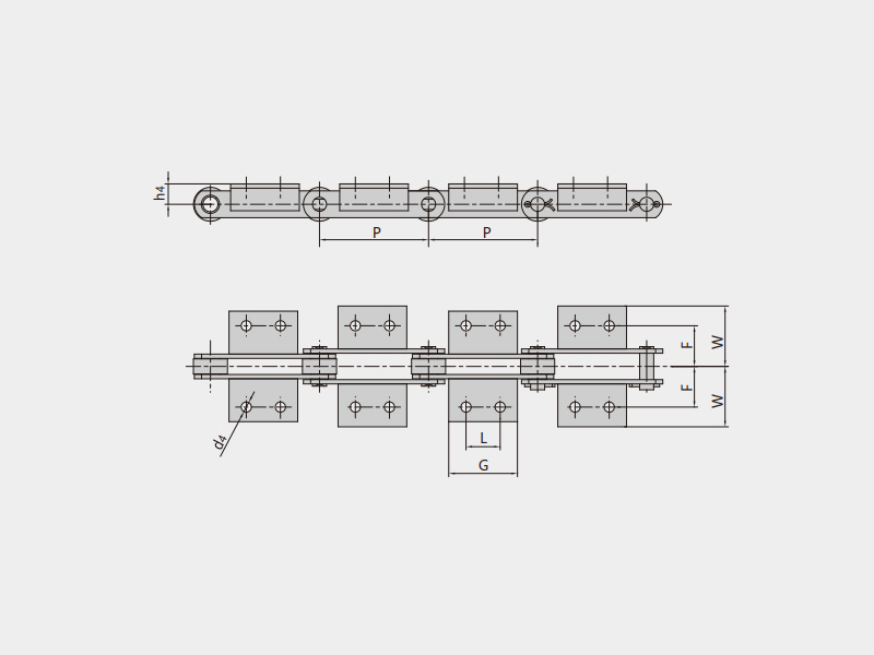 ● 米制輸送鏈是指鏈條節距為公制整數(節距范圍40mm~1000mm的多種節距)的滾子鏈或套筒鏈,滾子有多種結構形式,根據使用工況配置各種附件。