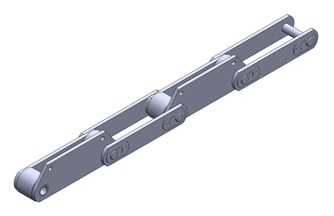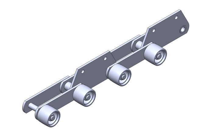 2.外置滾輪式鏈條: 噪音小,兼具大滾子式鏈條的性能優點。